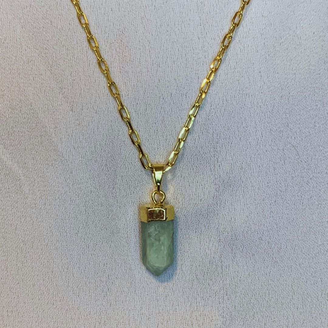Colar de Pedra Bruta Quartzo Bruto Água Marinha Banhado Ouro