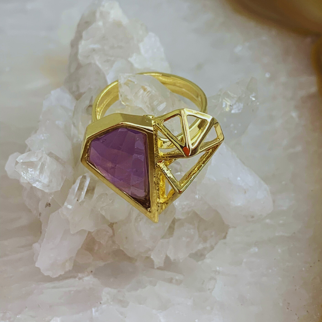 Descubra O Anel em Pedra Natural e garanta a harmonia entre a natureza e o luxo com o Anel de Ametista em Pedra Bruta Banhado a Ouro da Makamae Cristais. Cada peça é uma expressão única da beleza natural da ametista, capturando suas tonalidades profundas e texturas distintas. Banhado a ouro para um toque de elegância duradoura, este anel combina perfeitamente o estilo rústico com o glamour moderno.